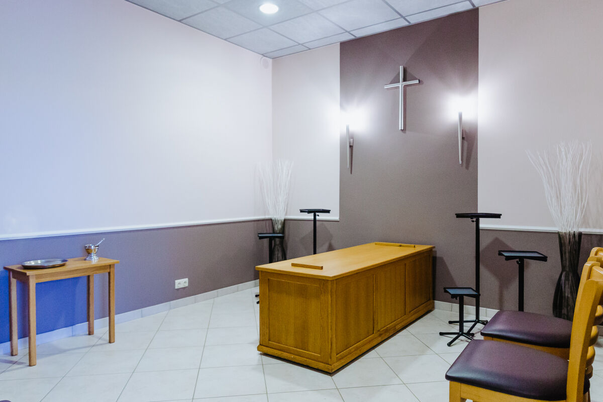 •  Garnissage du domicile ou transfert vers notre funérarium ou funérarium de votre choix