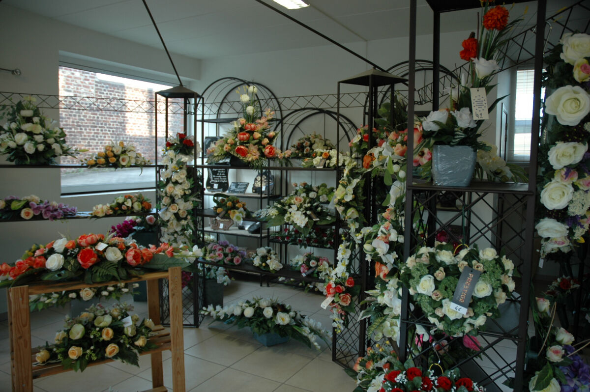 • Large choix de fleurs, plaques et vases