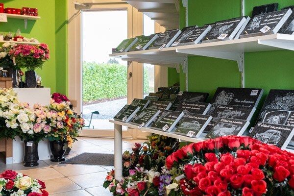 Dans notre magasin, vous trouverez un grand choix d’articles funéraires, (fleurs, plaques, vases, lanternes, bougies et plus encore).
