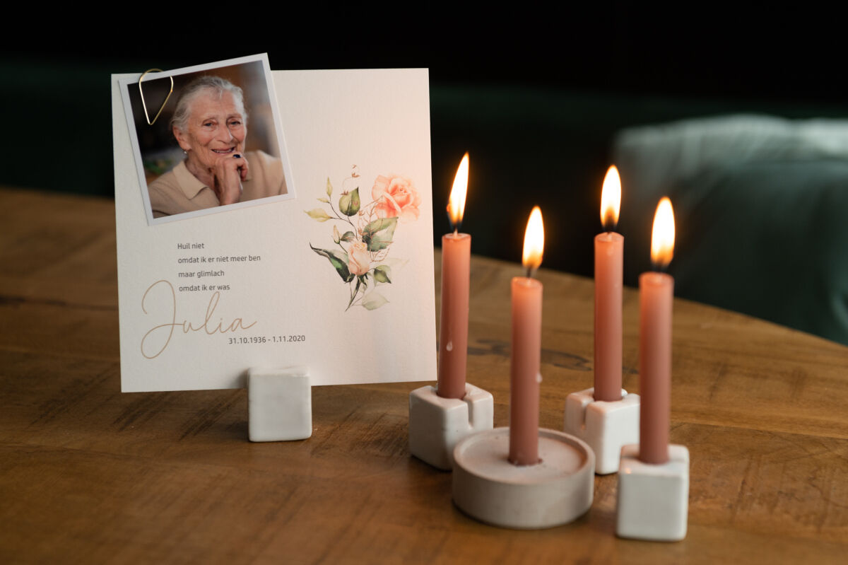Angélique en haar team proberen daartoe bij te dragen, met rouwbrieven en -prentjes die de persoonlijkheid van de overledene typeren.