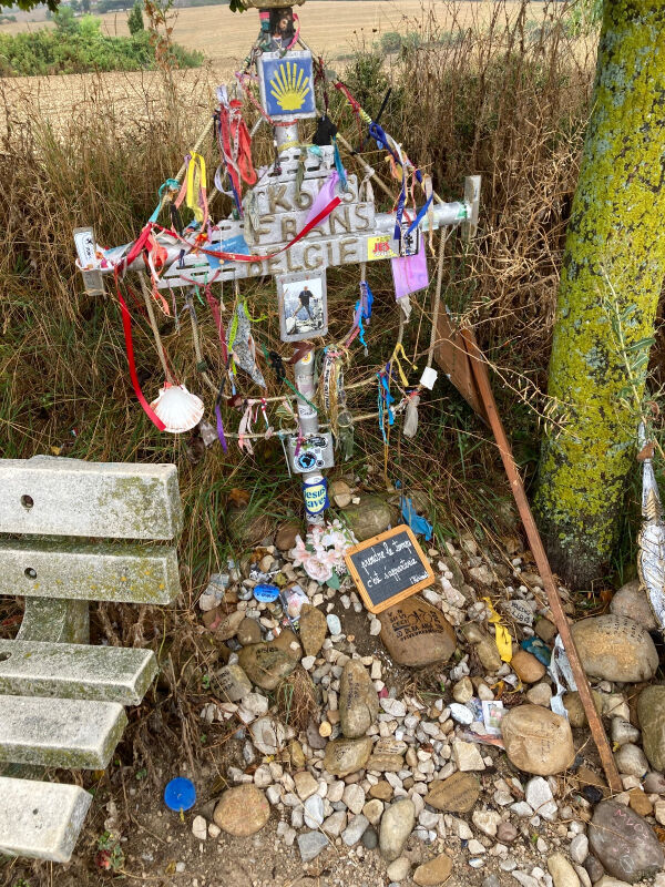 Telkens ik het gedenkkruis van Frans passeer op de Camino Francès, wordt ik geraakt door het overlijden van deze medepelgrim. Een Belg, iemand van Merksplas. Zelf kom ik uit Turnhout, dus dat is wel erg dichtbij. Het nieuws moet voor jullie heel zwaar gevallen zijn. Blijf fier!