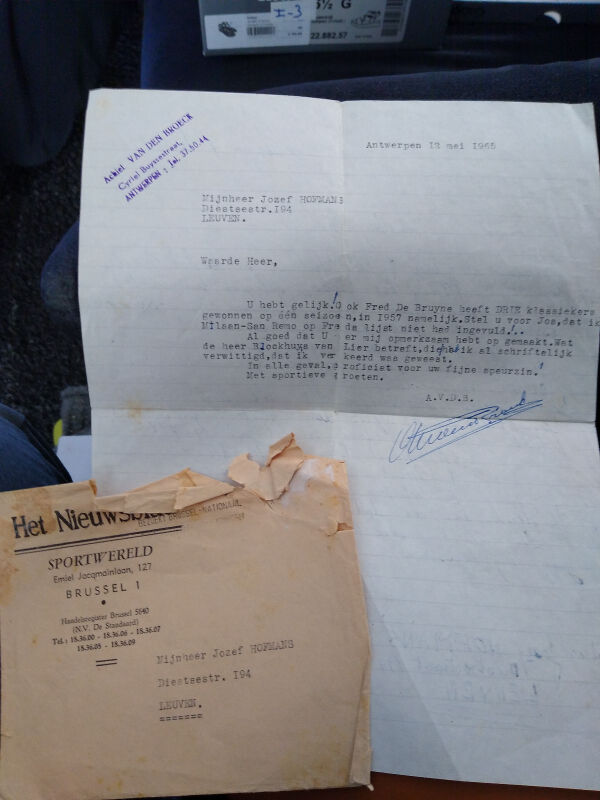 Een brief van jullie vader/grootvader uit 1965 aan mijn vrouw haar grootvader als reactie op een artikel in het Nieuwsblad.