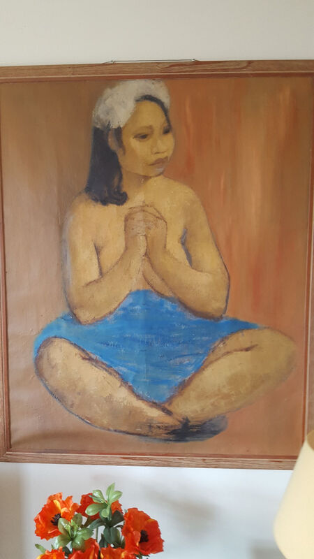 Het schiderij van polynesische zittende vrouw,Hij was steeds een geliefde gast ten huize va Bieke Van de Reck en Hilda Verbeeck. I d.