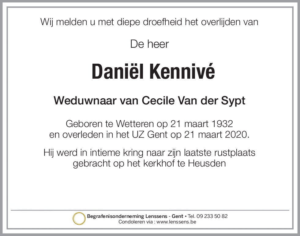 Overleden 21/03/2020 Gent