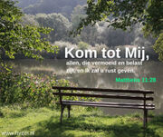 Kom tot Mij, allen die vermoeid en belast zijn en Ik zal u rust geven. Mattëus 11:28