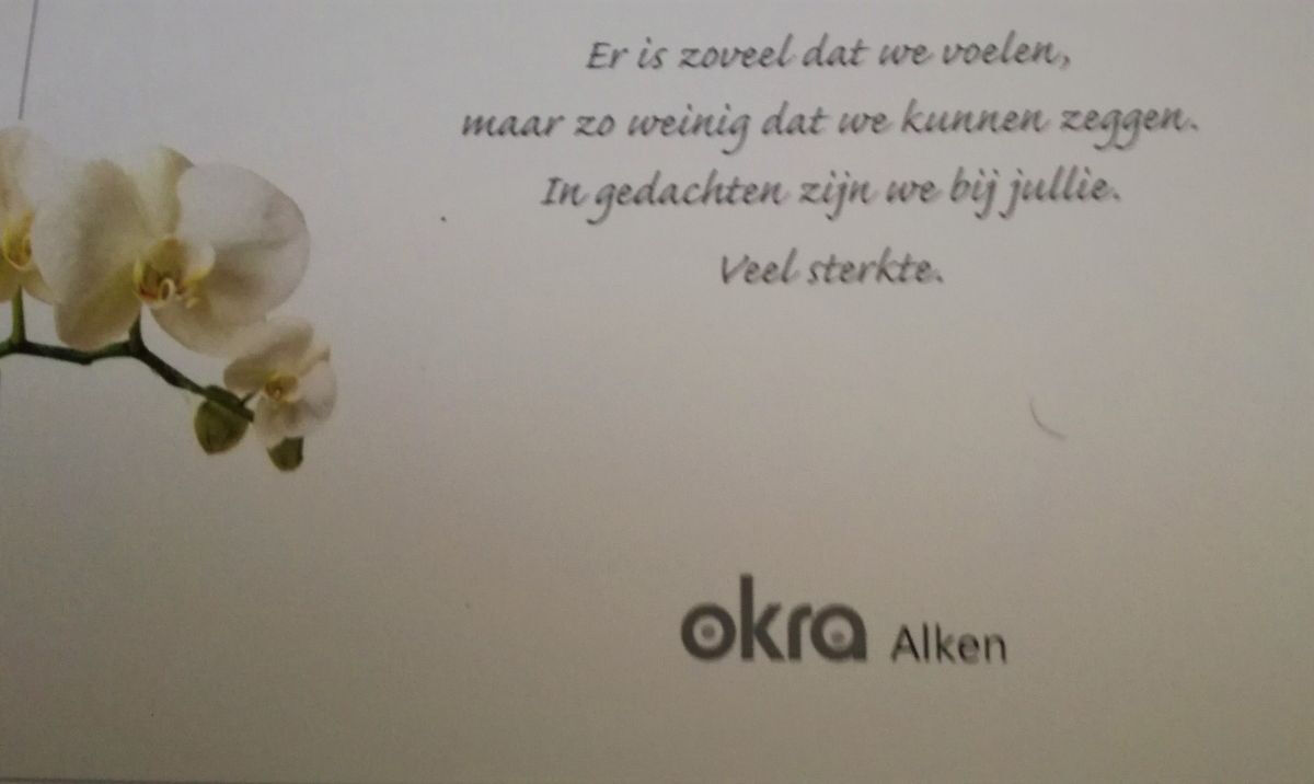 Slechts weinig woorden passen in een tijd van droefheid en pijn. Moge dit gebaar een teken van medeleven zijn.
