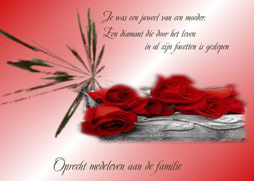 Innige deelneming bij het verlies van Uw mama en schoonmama.
