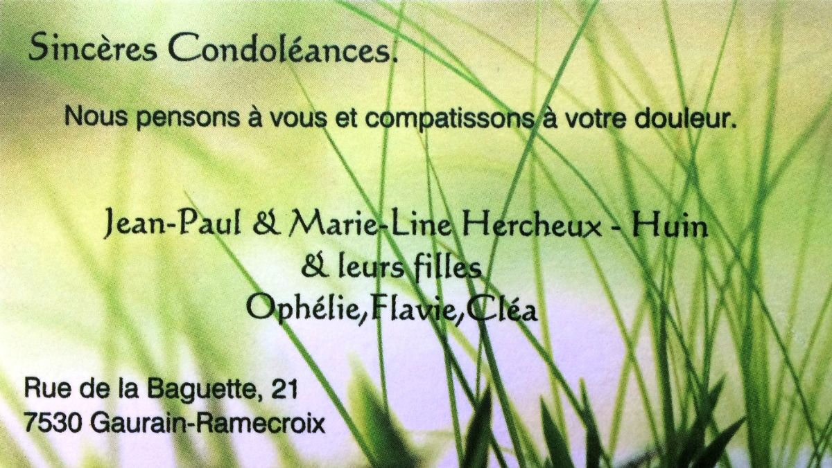 Nous présentons nos plus sincères condoléances à toute la famille et souhaitons à Esther tout le courage nécessaire pour surmonter cette difficile épreuve.Puisse les amitiés qui vous entourent vous apporter quelque réconfort.