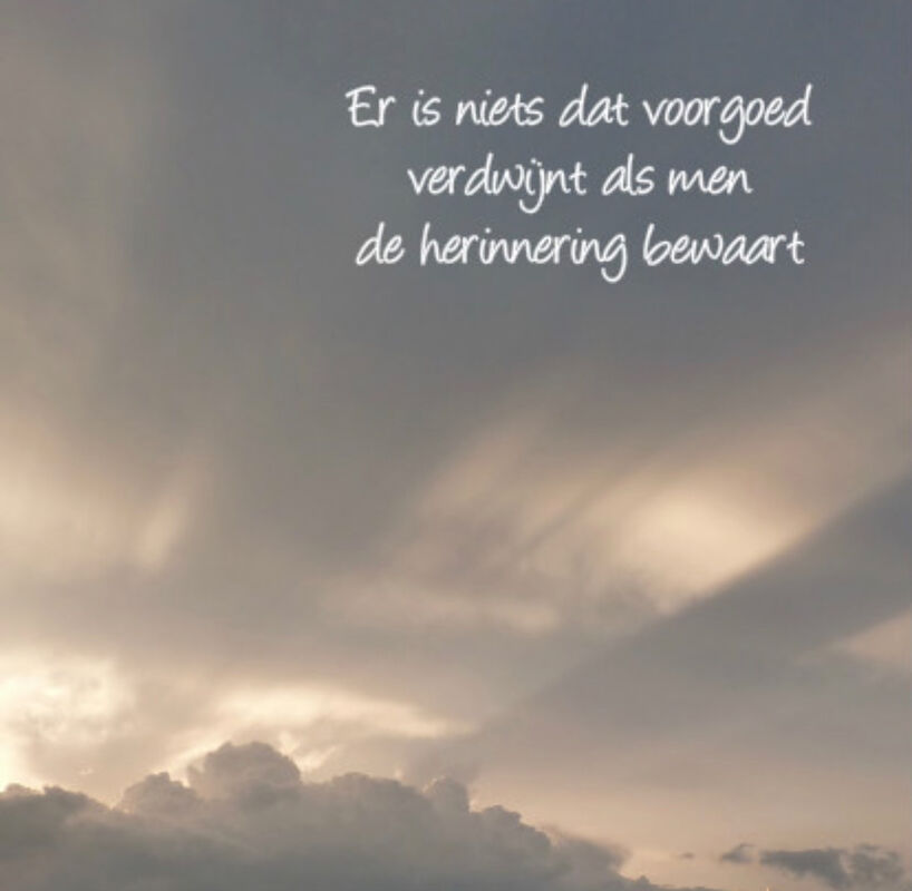 Veel sterkte gewenst in deze moeilijke tijd. Mogen deze periode alleen de mooie momenten boven halen die je samen beleefd hebt. Innige deelnemen van ons Petra en Leo uit het verre Castellane in het zuiden van Frankrijk.
