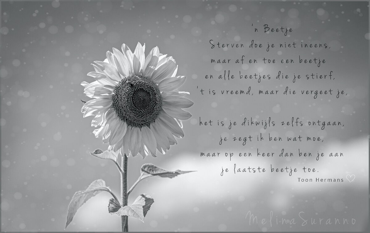 We zeggen geen grote woorden maar hopen dat een klein gebaar volstaat, en hopen dat tranen het verdriet verdunt.