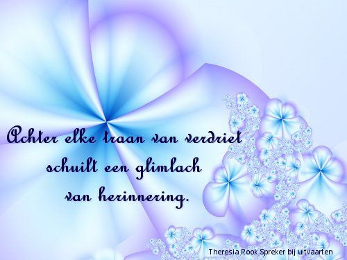 Ik wens jullie veel steun toe. Hierboven zijn ze een fantastisch persoon rijker. Koester de mooie herinneringen.
