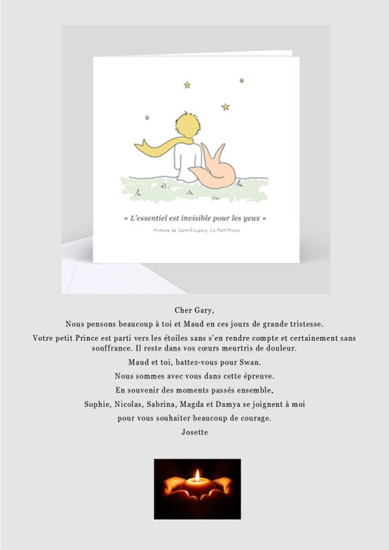 C'est avec beaucoup de tristesse que j'ai appris le départ de votre petit Edgard pour un autre monde. Je partage votre douleur et