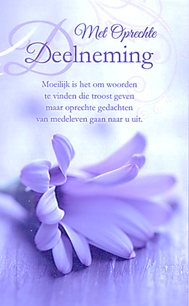 Onze welgemeende deelneming bij het overlijden van je vrouw, moeder, grootmoeder.