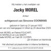 Verbonden in goede en kwade dagen mochten we in de voorbije jaren achter het masker van de acteur Morel ook het verhaal van de mens Jacky ontdekken. Hij kon dat op aanstekelijke manier vertellen. We zullen die kostbare episodes samen met hem hard missen.