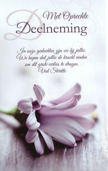 onze welgemeende deelneming bij het overlijden van uw echtgenote en mama.