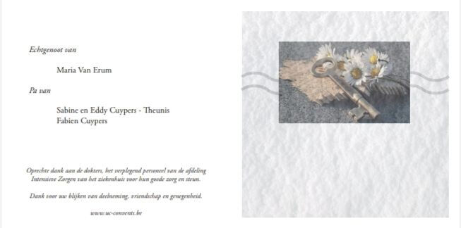 Hier kan enkel ingelogd worden door de beheerder, dit is een naaste van de overledene. Wil u zelf (mede-)beheerder worden van deze pagina, contacteer ons via info@inmemoriam.be. Voor meer info verwijzen we u graag naar onze FAQ.