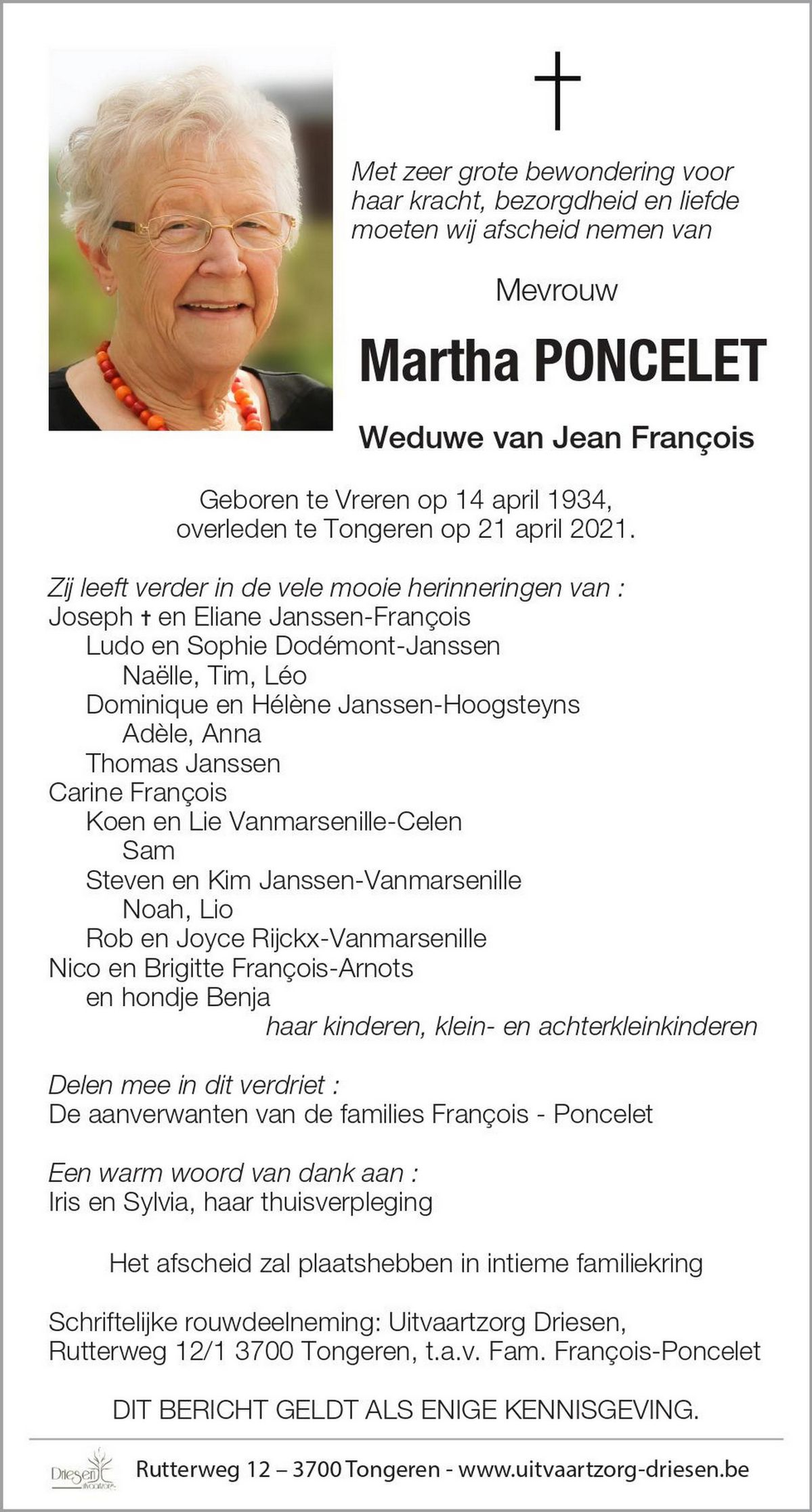 Met zeer grote bewondering voor haar kracht, bezorgdheid en liefde moeten wij afscheid
