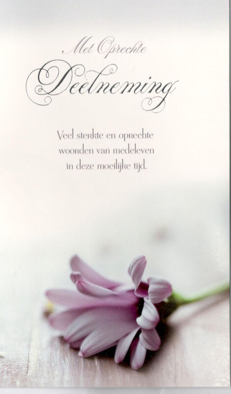 Innige deelneming in het verdriet dat u treft. Afscheid nemen is moeilijk. Wij wensen u veel moed en sterkte toe om het heengaan van uw dierbare te kunnen verwerken.
