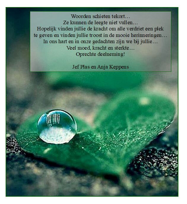 Diep getroffen door Franks overlijden, wensen wij jullie en iedereen die Frank liefhad en hem gaat missen, veel moed, kracht en sterkte.