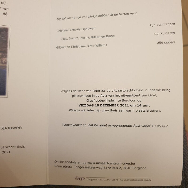 Christiane Gilbert en familie wij wensen jullie veel sterkte bij het overlijden van Peter oprechte deelneming