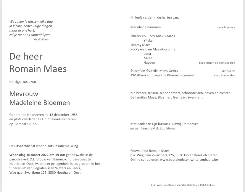 Oprechte deelneming en heel veel sterkte aan iedereen van de familie.