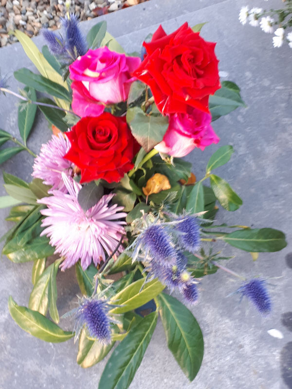Nooit vragen, nooit klagen,haar pijn in stilte dragen.Haar handen hebben voor ons gewerkt, haar hart heeft voor ons geklopt, haar ogen hebben ons tot het laatst gezocht.