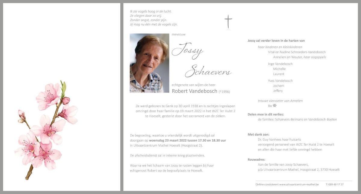 Onze oprechte deelneming bij het overlijden van jullie mama, schoonmoeder en oma.