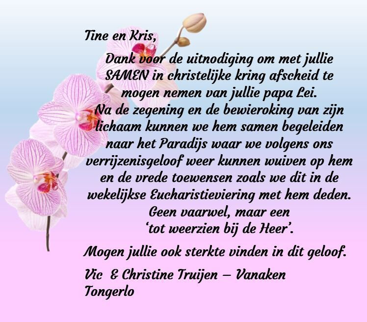 20 jaar geleden gingen Lei en ik geregeld iets drinken in de weekends,waar ik met plezier aan terug denk.Veel sterkte aan de ganse familie.Jaak Neijens& Kristien