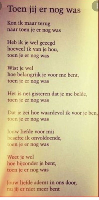 Dag lief moedertje, dag lieve vrouw, we missen je lach, je blije gezichtje als je ons zag. Dankbaar dat jij ons moedertje was x