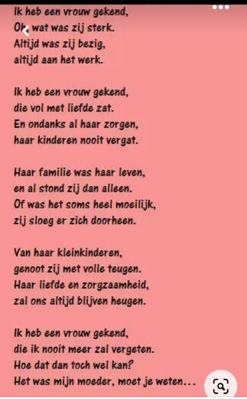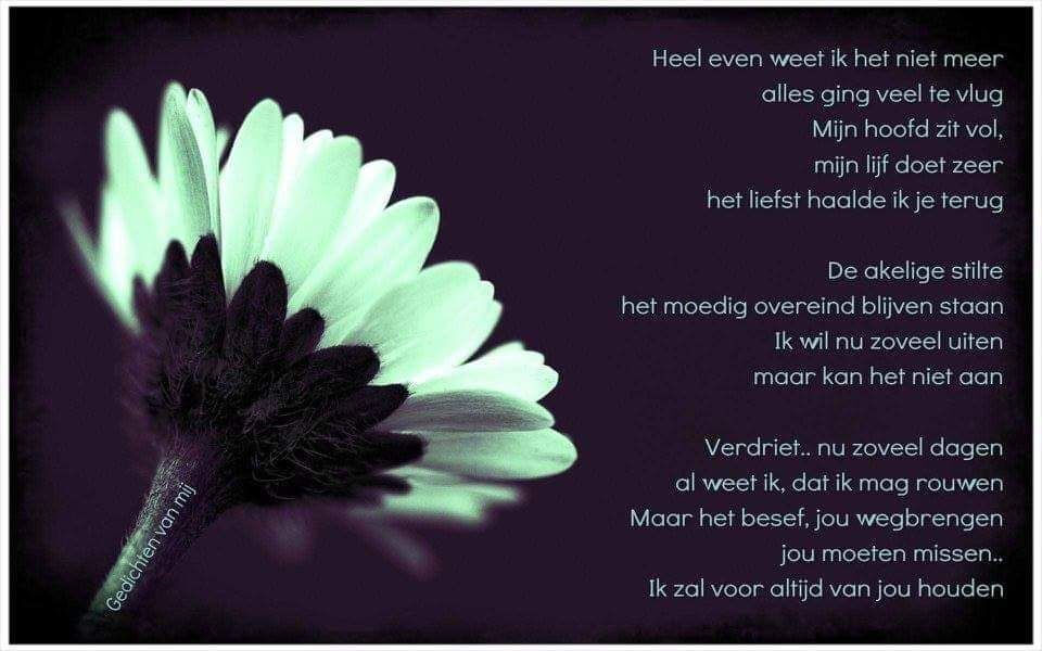 Mamske wat mis ik je , de leegte zonder jou , voelt zo onwerkelijk, iedere dag , week zonder jou ,doet meer en meer pijn , men zegt pijn heelt alle wonden , maar je niet meer horen, je niet meer zien went niet , we missen jullie, onze thuis, je lach, je blijheid als je ons zag , mis je xxx