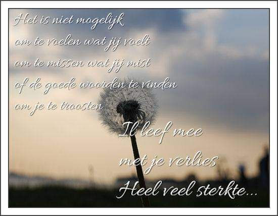 Innige deelneming en heel veel sterkte xx Koester de mooie herinneringen