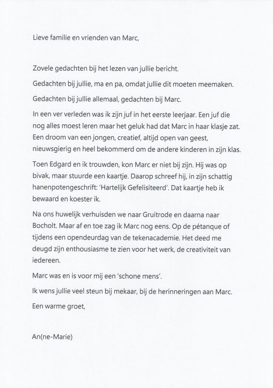 Innige deelneming bij de diepe pijn die u treft bij het heengaan van Marc.