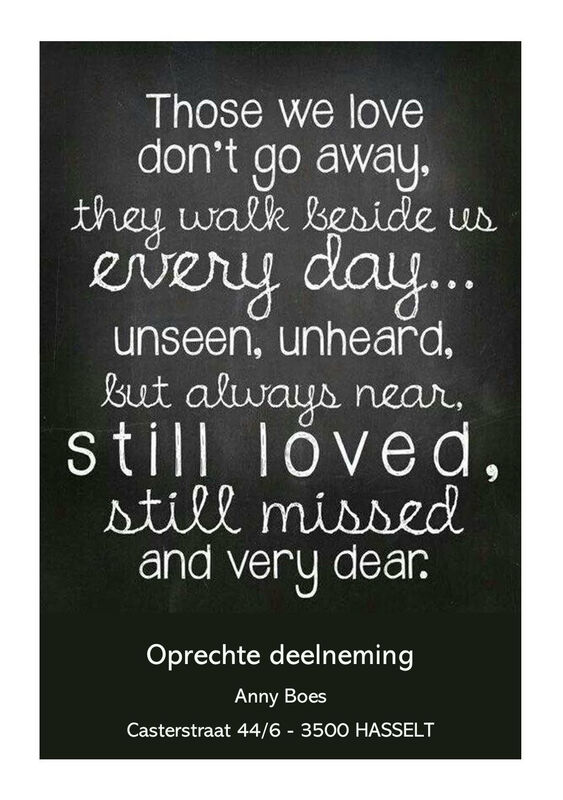 Oprechte deelneming! Troostende woorden zijn moeilijk te vinden, veel sterkte de komende tijd.