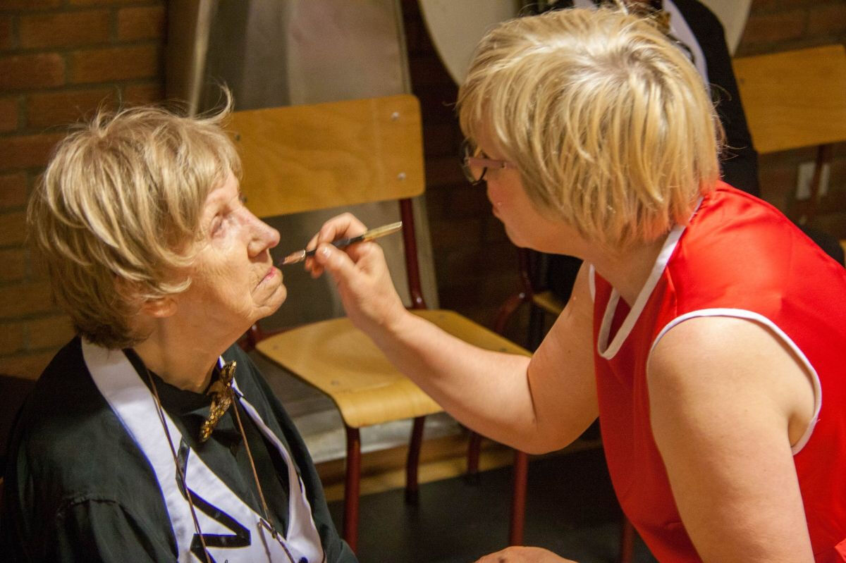 Gusta, de 'straffe Madam' tijdens onze Mozaïek voorstellingen.
