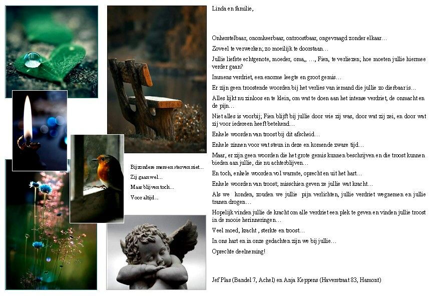 Onze innige deelneming bij het overlijden van Fien.