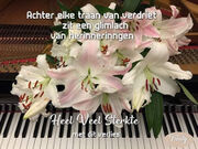 Jij bent hier niet fysiek, en ook al doet dat ons pijn, in woorden, klanken en muziek, zul je altijd bij ons zijn...