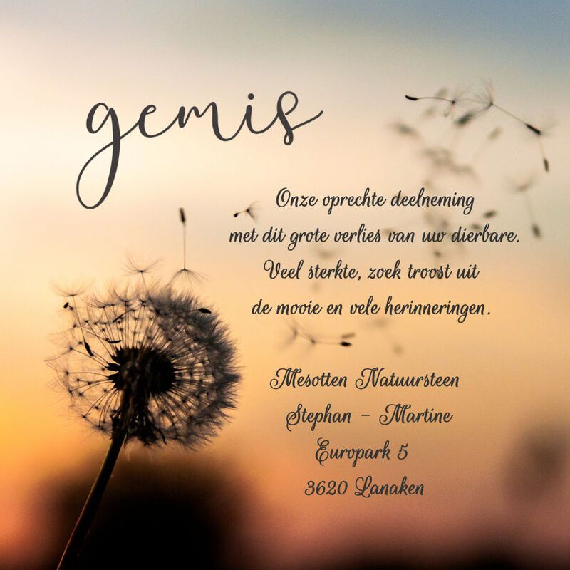 Oprechte deelneming; Veel sterkte aan de hele familie.