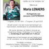 Innige deelneming bij het overlijden van Maria. Wij hebben haar zo graag verzorgt, en gaan haar lach missen.