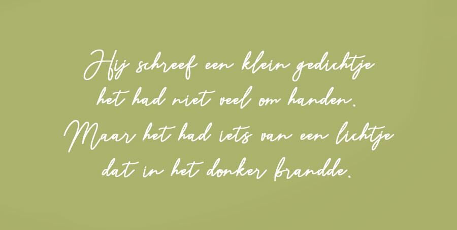 Herinner u niet mijn zware droeve dagen, maar wel mijn leven in de zon. Hoe ik was toen ik alles nog kon, zo graag was ik nog bij jullie gebleven