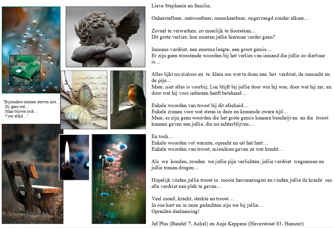Onze innige deelneming. Hij heeft zoveel voor mij gedaan. Ik ga hem missen.