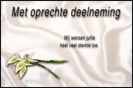Wij bieden jullie onze oprechte deelneming aan bij het zware verlies dat jullie treft. Wij hopen dat jullie moed en steun zullen vinden bij elkaar nu en in de toekomst.