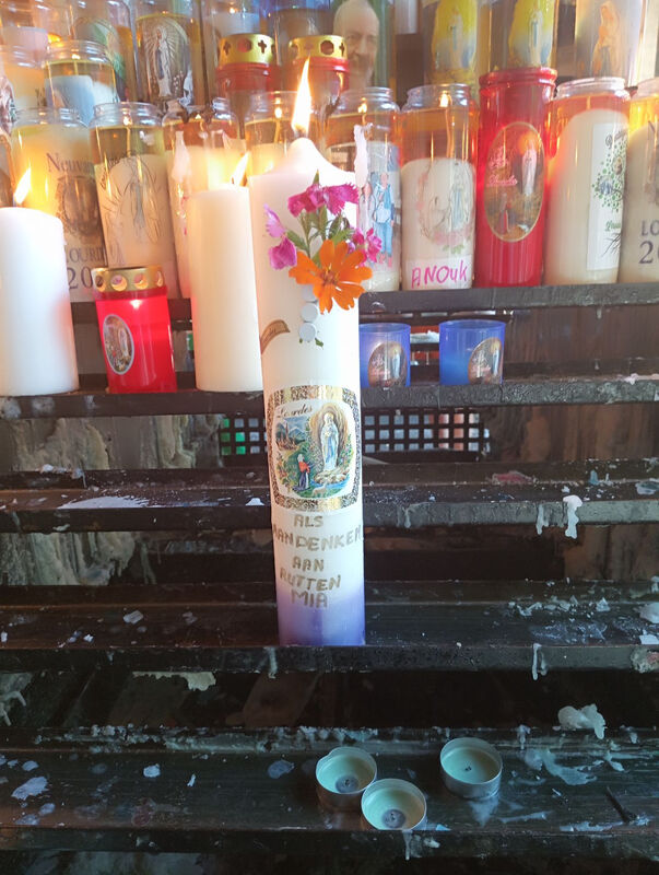 Vandaag hebben wij een kaars laten branden aan de Grot van Lourdes als aandenken aan jullie moeder, grootmoeder en overgrootmoeder.