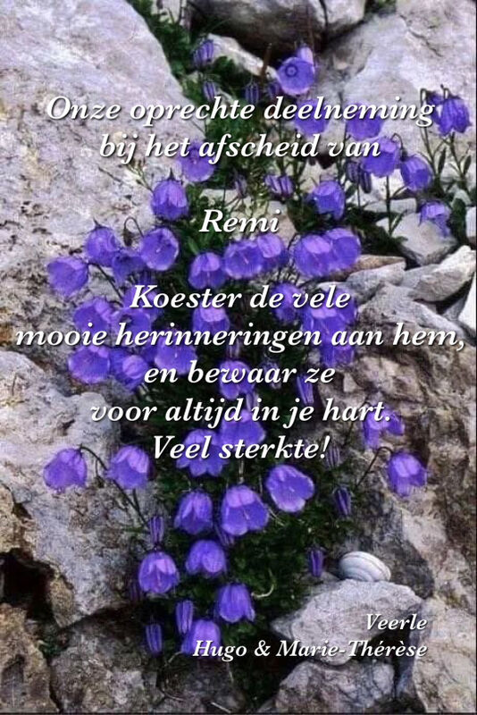 Innige deelneming bij het verlies Remi.Een trouwe klant en zo een lieve man . Veel sterkte aan denise en kinderen . Nadia en Petra