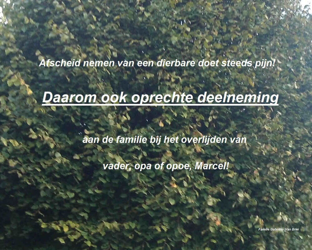 Beste Rita en familie, hierbij betuig ik U mijn kristelijke deelneming bij het heengaan van je Marcel.
