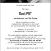 Op een dag vlieg ik weg van hier, ver weg. En weet niet waar naar toe. Ik had het thans naar mijn zin met u, die ik liefhad. Heb gij moeilijke momenten met mijn heengaan, Kunt gij het bij niemand kwijt, Ga dan in ons tuintje, En vertel het aan de bomen. Zij zullen naar je luisteren, Je niet tegenspreken en je begrijpen. Een zachte wind waait alles weg. En niemand zal weten wat wij voor elkaar betekenden. August Put