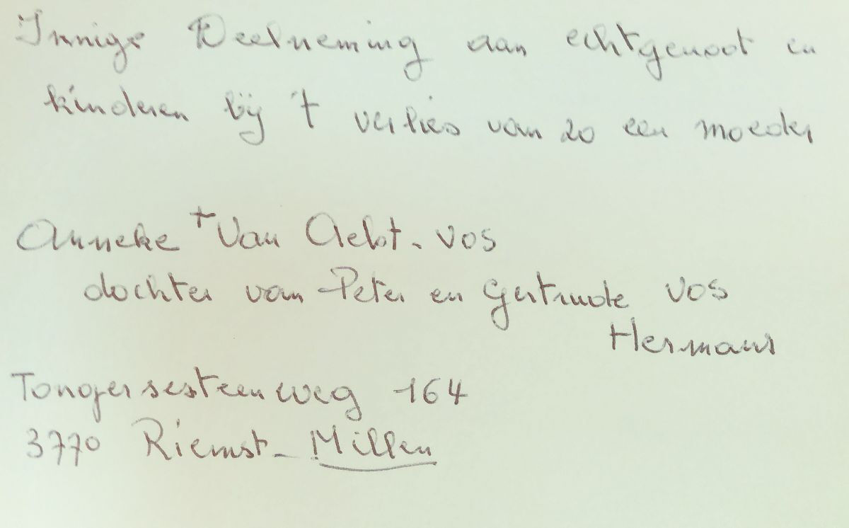Hopelijk kunnen de mooie en liefdevolle herinneringen jullie helpen bij de verwerking van deze moeilijke periode.