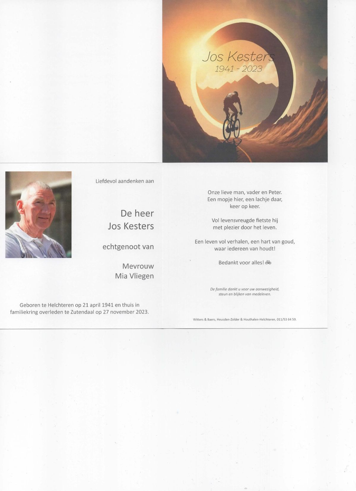 Hij kwam steeds met de fiets werken. Fiets maar verder in de hemel, Jos.