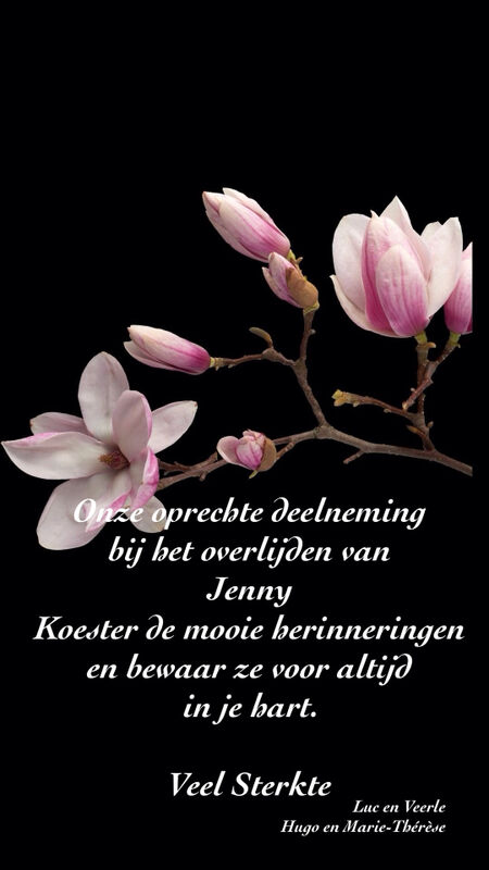 Wij bieden onze innige deelneming aan bij het overlijden van je zus Jenny.