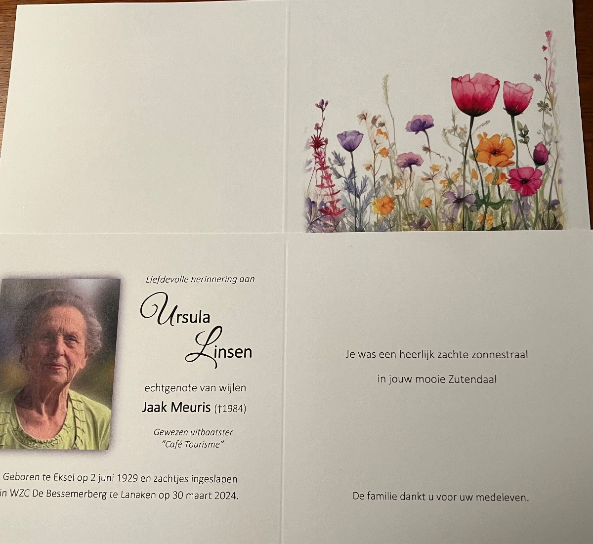 Oprechte deelneming bij het heengaan van Ursula. Ik herinner mij haar in het cafeetje in Zutendaal, goedlachse, vriendelijke vrouw, altijd goedgezind.