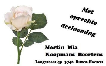 Mijn oprechte deelneming en koester de mooie herinneringen!! Veel sterkte !